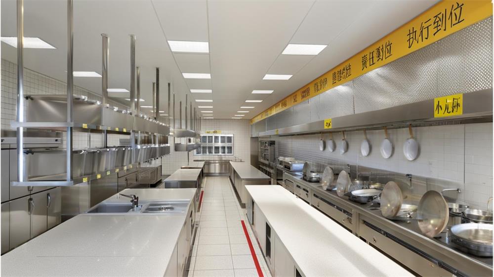 -洗碗*區(qū):位于廚房末端,配備高能效洗碗機(jī)與高溫*柜,保障餐具衛(wèi)生。